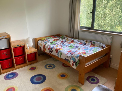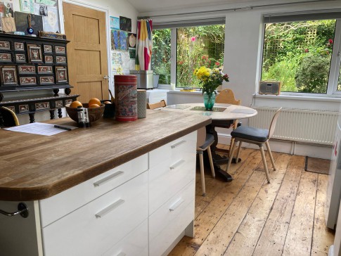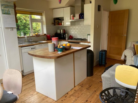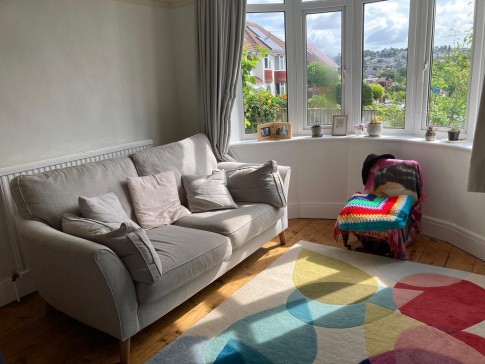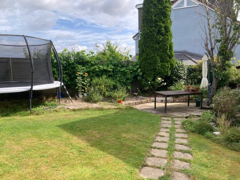 Our living room overlooks our front garden. Our open plan kitchen/diner has two sofas and overlooks our enclosed back garden. There we have a trampoline, swings and garden table with chairs available.