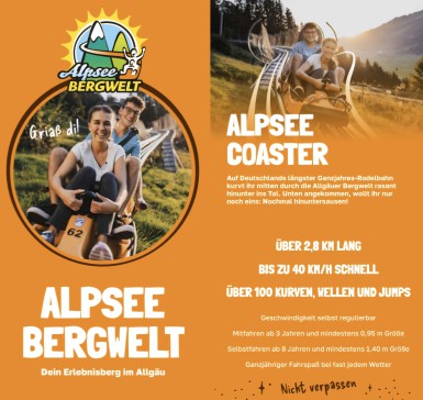 The longest all-year toboggan Alpsee Coaster is very popular by our kids. www.alpsee-bergwelt.de