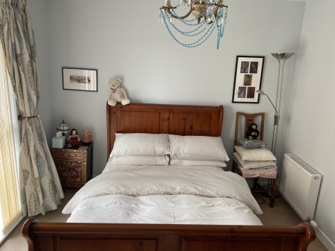 Guest double bedroom which is lovely and bright with double fitted wardrobe, table, lamp & TV.