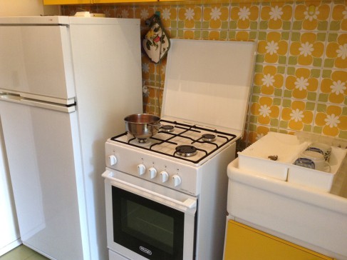It`s a rustic looking but perfect place. Two bedrooms, one twin, one double, plus a comfortable sofa bed in the living room that accommodates two - in front of the fireplace. Large dining table, kitchenette with fridge, gas cooker with oven. Bath tub, washing machine in the bathroom. Two balconies, huge condominial garden with tennis court.
