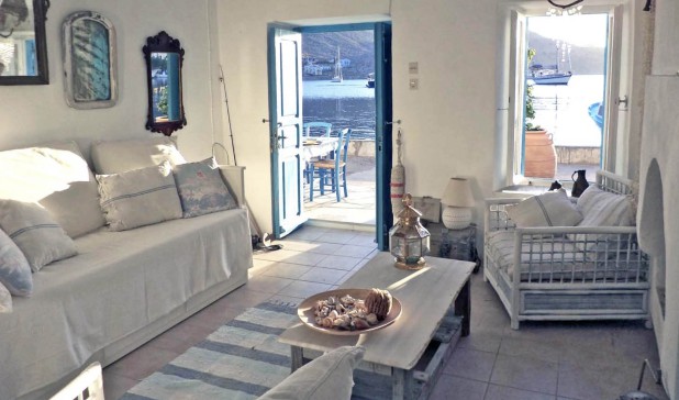 A charming detached old stone house/villa right on the watersedge of a quiet sheltered fishermans bay. It is two storey with a quirky outside stone stairway, its own sea jetty and an upstairs verandah with an incredible view towards Turkey especially at sunrise and sunset. It also has a charming little garden patio with flowers and herbs and a large sun terrace on the upper floor. Windows at all aspects keep the house cool allowing the sea breezes through and giving plenty of light. Ideally suitable for a couple or a couple with 1 young child upstairs plus an older child or adult sleeping downstairs.