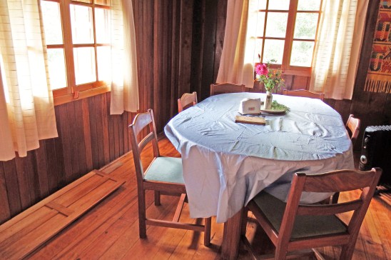 The on-site Caretaker lives in a separate house on the property. He takes care of maintenance, chops the firewood, lights the fire when necessary and makes sure you are comfortable. He is also a Guide and speaks some English. The house has 3 bedrooms, upstairs, 1 with 2 single beds, 1 with a double bed, and 1 with a double bed and 1 single. There is one bathroom, with full size bath and shower upstairs. Downstairs there is the kitchen, dining, living area and a toilet with hand basin and coat hanging and boot storage. Water is piped to the house from a natural mountain spring.
