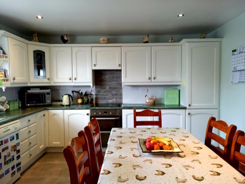 The home is located on a quiet road off the N15 road between Bundoran and Sligo near Tullaghan village. It is a large country house with all ammenities. Downstairs there is a kitchen with separate dining room, living room, bedroom and bathroom. Upstairs there are three large bedrooms one with ensuite and a bathroom. There is a detached garage and large gardens outside. There are views of Benbulben Mountains, Mullaghmore village, Classiebawn Castle and Donegal Bay.