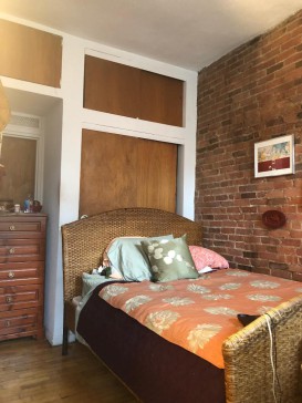 The apartment has high ceilings-brick walls, fireplace, Cable TV/Stereo, Dvd.