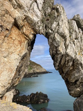 Our home has a really novel layout, is airy with superb views from nearly all windows. We have two double bedrooms (one super king-sized sleigh bed) and one single. All have sea views.