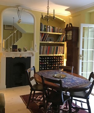 You arrive at our front door up a short winding path through the garden. Downstairs there is a comfortable sitting room (with open fire for chilly winter nights), dining room, kitchen/conservatory and utility room, with gardens to the front and back. We especially like our bathroom (a great place to wallow and chat) and recently renovated kitchen. At the very top of the house is a second bedroom with a magnificent view across the rooftops to the Salisbury Plain (spot the chalk white horse on a distant hill-side - a typical Wiltshire landmark).