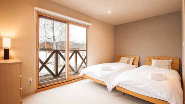 The chalet backs onto the Osawa Stream with views of tranquil forest from the living room. One of the bedrooms has views of Mt. Yotei and sounds of the gurgling brook can be heard throughout the house.