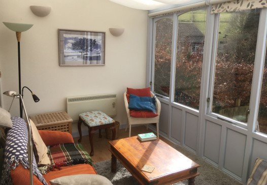 I have a 100-year-old house in the Cotswolds, south-west England, on the edge of the town of Stroud, looking out over beautiful countryside. The house is spacious, on four floors with three bedrooms, a yoga/meditation room, bathroom, living room with wood burner, reception room, hall, and modern airy kitchen extension large enough for a family to eat around the table. There is off street parking. The south-facing garden is extensive - a newly built patio, deck, flat lawn and small orchard with a pond which is bordered by a spring-fed stream at the bottom. My favourite place to sit is by the pond in the shade of the apple tree. There are quite a lot of steep stairs in the house and steps in the garden - small children (or very aged adults) beware!. I also have a delightful six year old cat called Kira.
