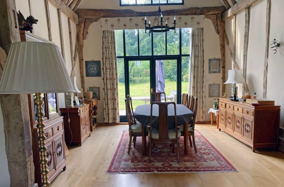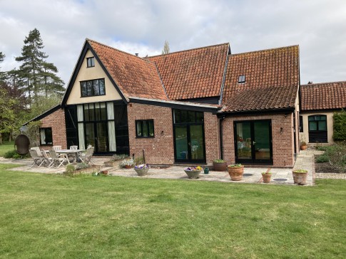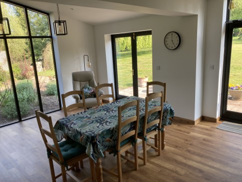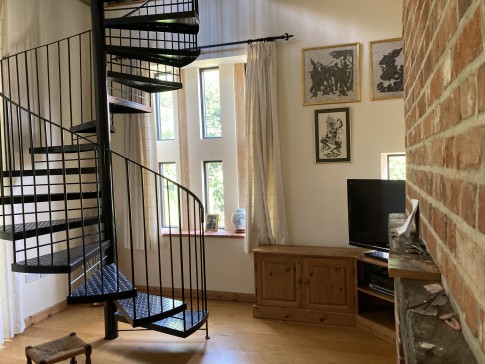 It is a listed barn conversion. Apart from a small gallery accessed by a spiral staircase from the snug the acommodation is on the ground floor. However, there are different levels so you should be aware that there are a few steps here and there. Much of the house faces south, so is bright and warm. The living accommodation is spacious and comfortable. It is ideal for families with members of varying ages.