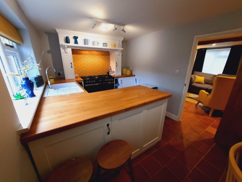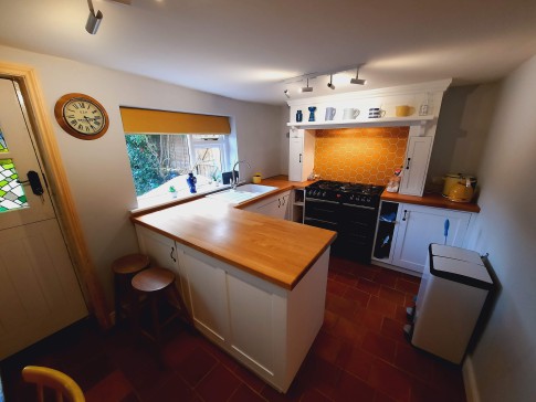 Kitchen/Diner: This is a compact room, but includes a range cooker with 6 rings and 2 ovens, fridge, washing machine and sink. The table seats 3 normally, but extends to seat 4 if needed. Kitchen equipment is relatively comprehensive, and extends as far as whisks, measuring jugs, scales, pizza trays, etc. Note that there is no icebox or freezer and no microwave.