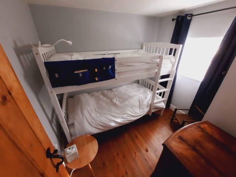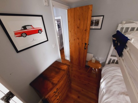 Bedroom 2: Bunk beds (Bottom bunk suitable for an adult, top bunk children only), wardrobe and drawers.
