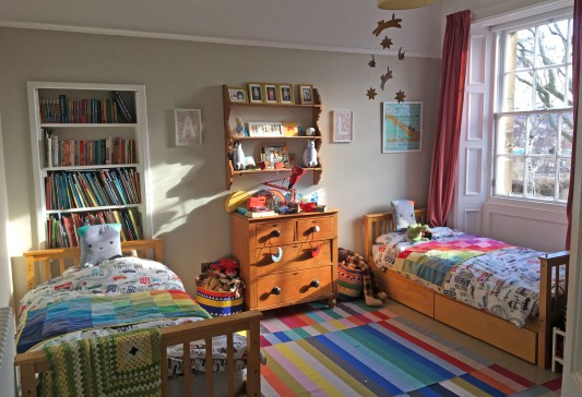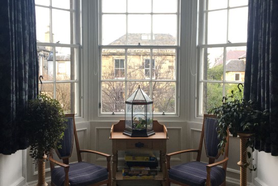 Elegant, spacious family home just north of the city centre. Ground floor includes large kitchen with dining table. The kitchen / dining room opens onto the TV room and then onto a playroom / sun room with access to a beautifully landscaped, south-facing walled garden. The garden has a sunny patio / outdoor dining area, and additional seating area to catch the evening sun, and a small hidden treehouse / swing area for kids. The ground floor also has a toilet and laundry room. The middle floor includes large living room, perfect for family games; twin bedroom (with views of the Edinburgh sky line); single bedroom; family bathroom and additional toilet. The top floor includes a large double bedroom (with spectacular view of the Botanical Gardens, Edinburgh Castle and the city skyline); large on-suite bathroom (with separate bath and shower) and a study with a sofa bed. We have 3 children aged 3, 6 and 9 so there are plenty of books, toys and games to enjoy. We also have 2 easy-going, child-friendly cats who would need to be fed (dry food only) twice daily. They have a cat flap so are able to come and go freely.