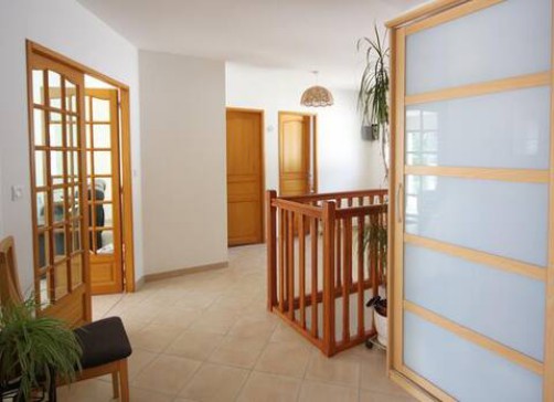 To the other side of the hall is a guest bedroom (9m2) next to which is the family bathroom (bath, shower, wash-basin and WC).
