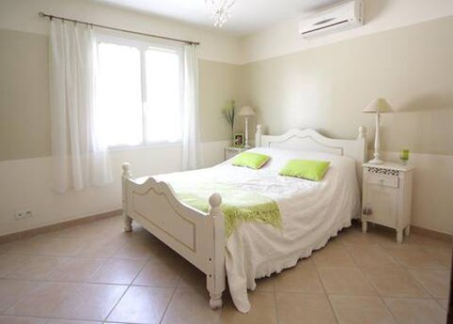 To one side of of the hall is the master bedroom suite which includes the bedroom (12m2), a large walk-in dressing room (8m2) and an ensuite shower room (shower, wash-basin and WC). This room also benefits from air-conditioning.