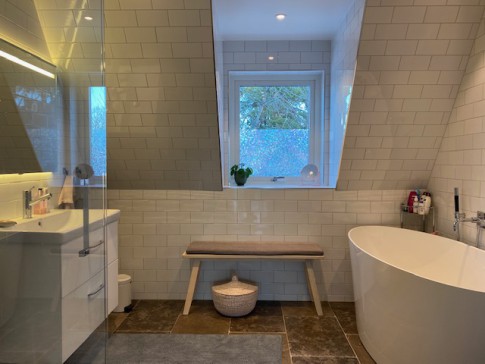 It’s a sloping house and you have the house and garden to yourselves, except from an apartment on the ground floor (you only share the driveway).
