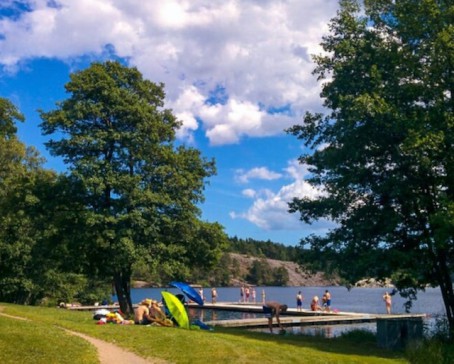 Nacka nature reserve is perfect for swimming, running and forest walks. From the house there is only a few minutes walk to two beautiful lakes where you can go swimming in the summer. Nearby you can work out at an outdoor gym or have a sauna, in winter time ice-skating and cross-country skiing. A small playground with swings and climbing frame across the street.
