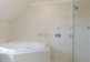 This is two level living with one huge bedroom and a luxurious bathroom with a spa bath and twin shower upstairs. The washing machine is also in here.