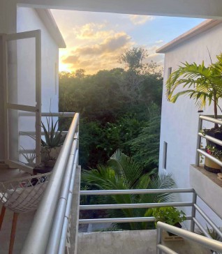 Two bedroom condo in a gated community with a swimming pool close to nature, as well as restaurants, cafes, and markets. My colorful and creative condo will transport you to tropical paradise and is filled with treasures from around the world.