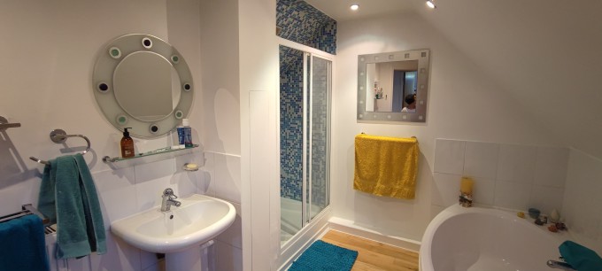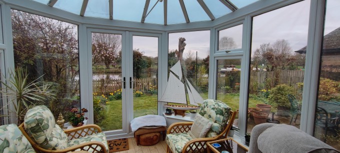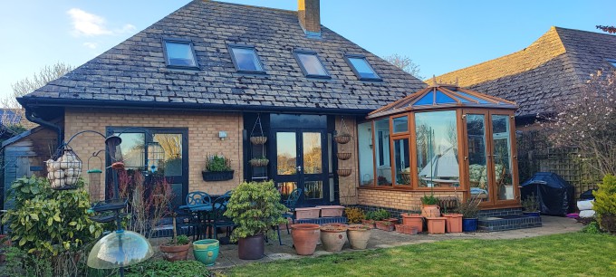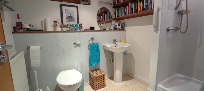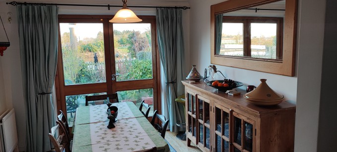 Our home is a modern two storey riverside house. South facing with 3 bedrooms, 2 bathrooms, a study, conservatory and sunny garden opening onto the riverside towpath.