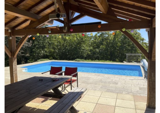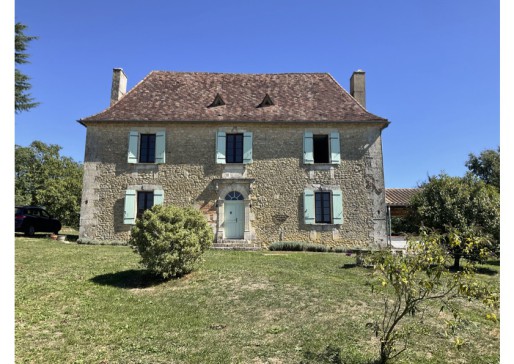 Detached Farmhouse (1848) in the country surrounded by walnut orchard. Large rooms, two with ensuite shower. Large pool with sheltered terrace, BBQ. House in good condition.