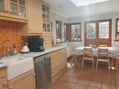 Downstairs, the house has a cosy kitchen with Aga and an adjoining snug / TV room, separate dining room and large living room (both with log burners), as well as a utility room, office and shower room.