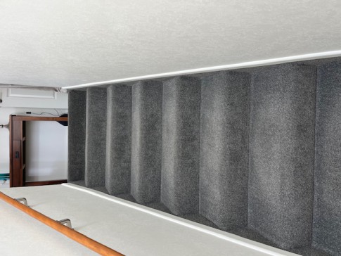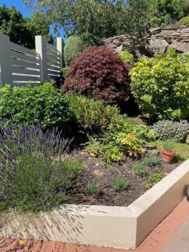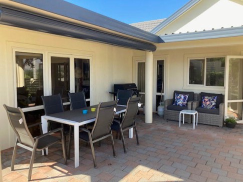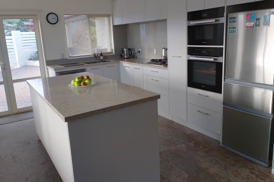 The house has 2 bedrooms, one en-suite, office, family bathroom, laundry, two living areas with a recently renovated and well-equipped kitchen. There is a private courtyard/back garden, double garage and small front garden. The house is well set up for Winter and Summer with 3 heat pumps and a gas fire and a retractable awning for summer shade when required. The house is split level with a stairs from the hallway to the main living area (see photo of stairs).