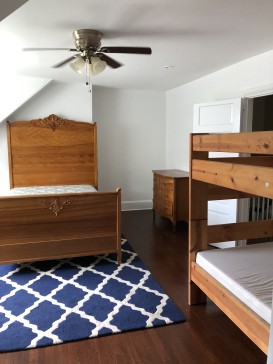 We have a four-story, six-bedroom home in the historic Overbrook neighborhood of West Philadelphia. The home was built in the 1890s, and in the 2010s it was restored and updated. The house has hardwood floors and area rugs. No garage but there is plenty of street parking.