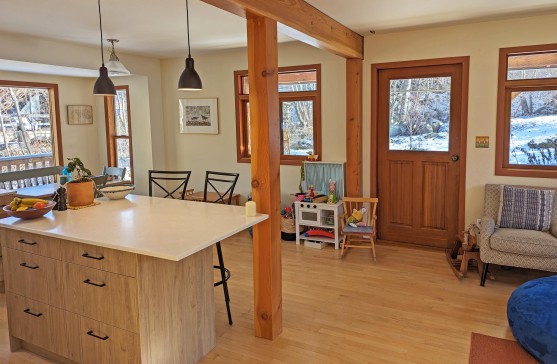 The expansive open-plan living, dining, and kitchen area provides a spacious environment that opens onto our fenced garden. Adorned with fruit trees, vibrant flowers, and a babbling creek, the garden offers a serene backdrop for relaxation. As a guest, you`ll have access to a BBQ for outdoor dining, an electric bike for exploring the surroundings, and a canoe for leisurely adventures on the water.