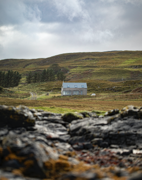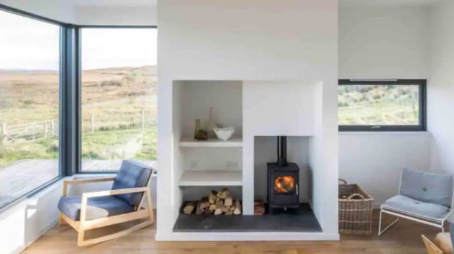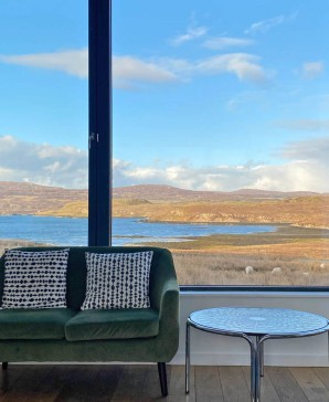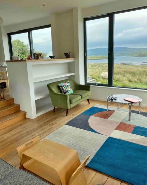 Beautiful architect built holiday house in Isle of Skye, on the shores of Loch Dunvegan, and the backdrop of Macleods table mountains.