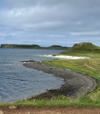Loch and mountain views. Near to Dunvegan (7 mins drive) en route to Neist Point lighthouse cliffs, walkable to 3 chimneys Michelin star restaurant. Nearby also to Coral beaches. Surrounded by nature and incredible views. Seals and sometimes dolphins spotted in the loch. Much more besides.