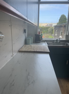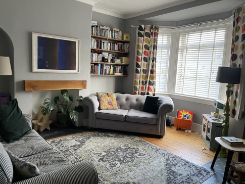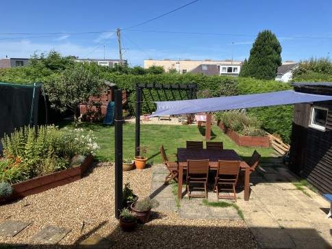 Living room with tv, sofa + sofa bed, and lots of books & board games to choose from. Kitchen with back door out to garden. Large fully enclosed quiet back garden with dining space, lounge seating, trampoline, little house & slide.