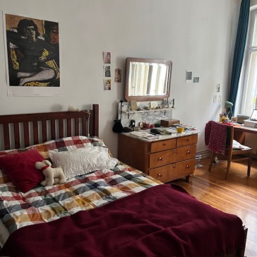 An old building (1898), a flat with high ceilings and partly wooden floors, one room with a balcony, bathroom & a lovely spacious kitchen. One of the rooms will be used by a friendly flatmate who works there for a couple of hours Mon.-Friday during the day. Please note that the flat is in a sort of "bohemian" state, simple but cosy.