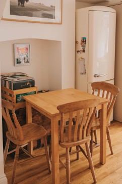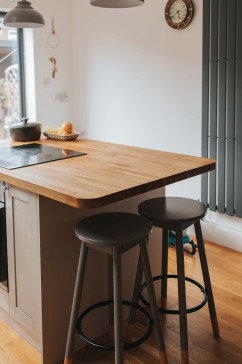 It is a family home for two adults and one child, currently 5 years old. We have an open plan kitchen-diner that looks out onto our garden and outhouse. The outhouse has a toilet and washing machine and currently houses a drum kit too!