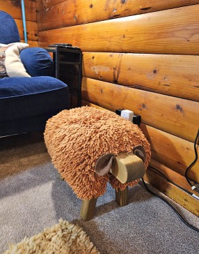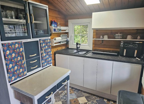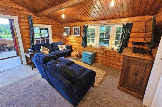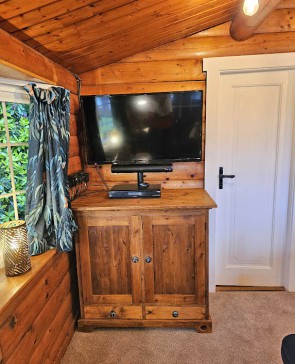 Inside our cabin, you will discover a warm and inviting atmosphere with a focus on modern conveniences. For added comfort, the cabin features wifi-controlled heating, ensuring you stay cosy throughout your stay regardless of the unpredictable Welsh weather! The living room also includes a stylish cast iron Everhot stove with a handy small internal oven. Stay connected with free unlimited Wi-Fi and enjoy your favorite shows on the satellite TV in the living room or stream your preferred content using the Roku stick. There is an additional small smart television in the main bedroom with built in DVD player. A small selection of board games and books are also provided. Please feel free to swap books! There are ample sockets and there are USB sockets in the side tables and bedside lamps.