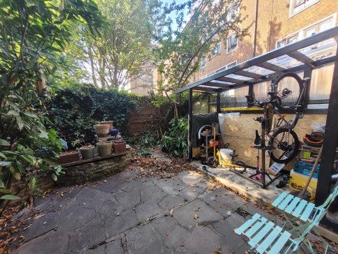 North London ground floor three bedroom flat / apartment with a backyard and shared front garden.