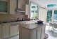 There is a living room, dining room, and kitchen downstairs with a courtyard for outside dining. The bedrooms are upstairs.