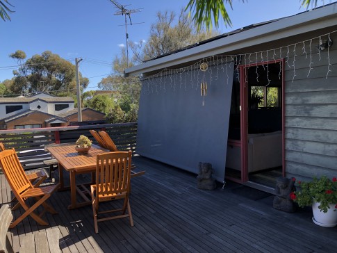 Great privacy, a backyard, wooden floors, all electric (solar panels), induction stove, 2 airconditioners, 20 minutes to closest train station to go to Melbourne, 20 minutes walk to closest beach, great surf in the area, golf course next door, great coffee places nearby,  great restaurants nearby, surf schools nearby, several great beaches to choose from in the vicinity, 10 minutes to closest shopping centre, carport for 1 car or 2 small cars. Driveway fits up to 3/4 cars.