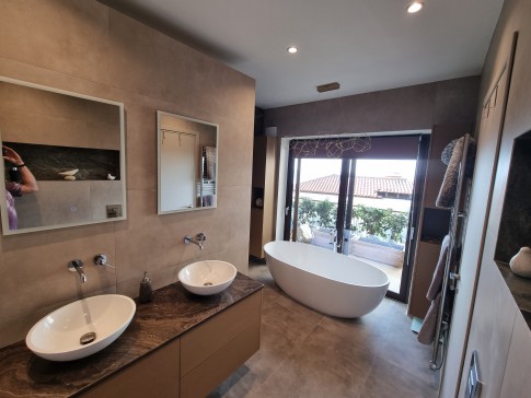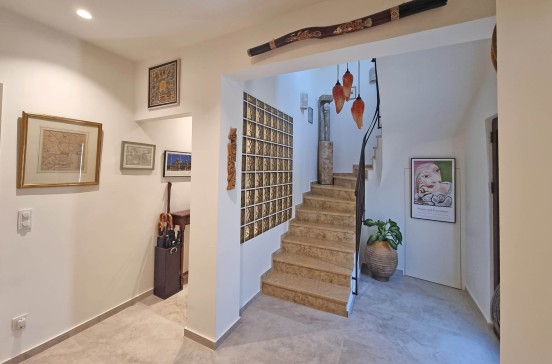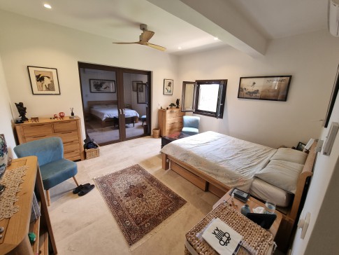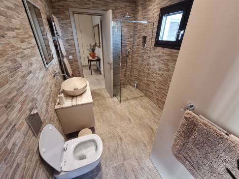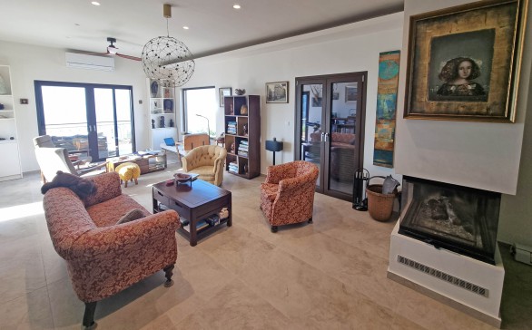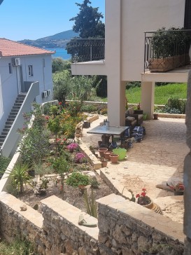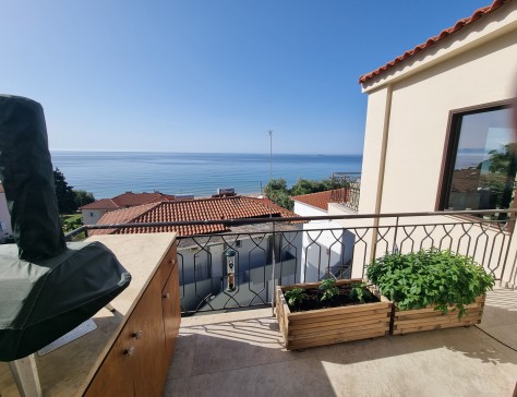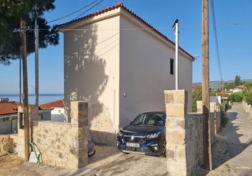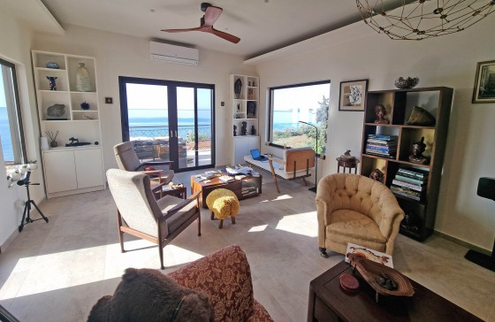 The house has been recently renovated/re-designed by us and is filled with art and objects that we have lovingly collected during our many travels. There are three bedrooms, two with a double bed one with a sofa-bed, three bathrooms, one with a bath tub, a well equipped kitchen and a very spacious and airy living area with wonderful views of the sea, Koroni castle and the church of the Virgin Eleistria, patron saint and protector of the town. In addition, there is a basement area and a recently planted garden with young trees, flowers and vegetables that is a home to a semi-domesticated cat and a land tortoise (no care required for either). The house has a new heat-pump system for heating and cooling and in addition the bedrooms and living areas also have ceiling fans.