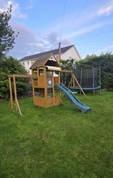 The garden is spacious, providing plenty of space for kids to explore. On dry days, you can enjoy sitting on the dedicated patio area, or you can take a 10-minute drive to the amazing lakeside. During chillier days, the cozy fireplace is perfect for warmth and comfort.