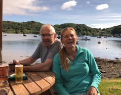 We have a mature, secluded garden with patios backing onto a natural woodland and a stream, so although we don’t have sea views, we look out over garden and woodland and are a very short walk from the head of the loch, where we can access the water from a rough slip and pier.
