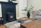 Cosy and comfortable with large windows and open fireplace and stove.