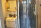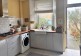 Second kitchen with a washer dryer, microwave/oven, and gas hob. A door provides direct access to the back garden.